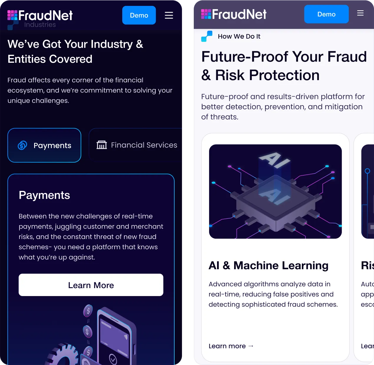 Fraud.net wasn’t just a website — it was a massive, complex portal built to educate users and clients on anti-fraud tech. With CMS integration, webinars, and tons of custom features, it was as exciting as it was challenging.