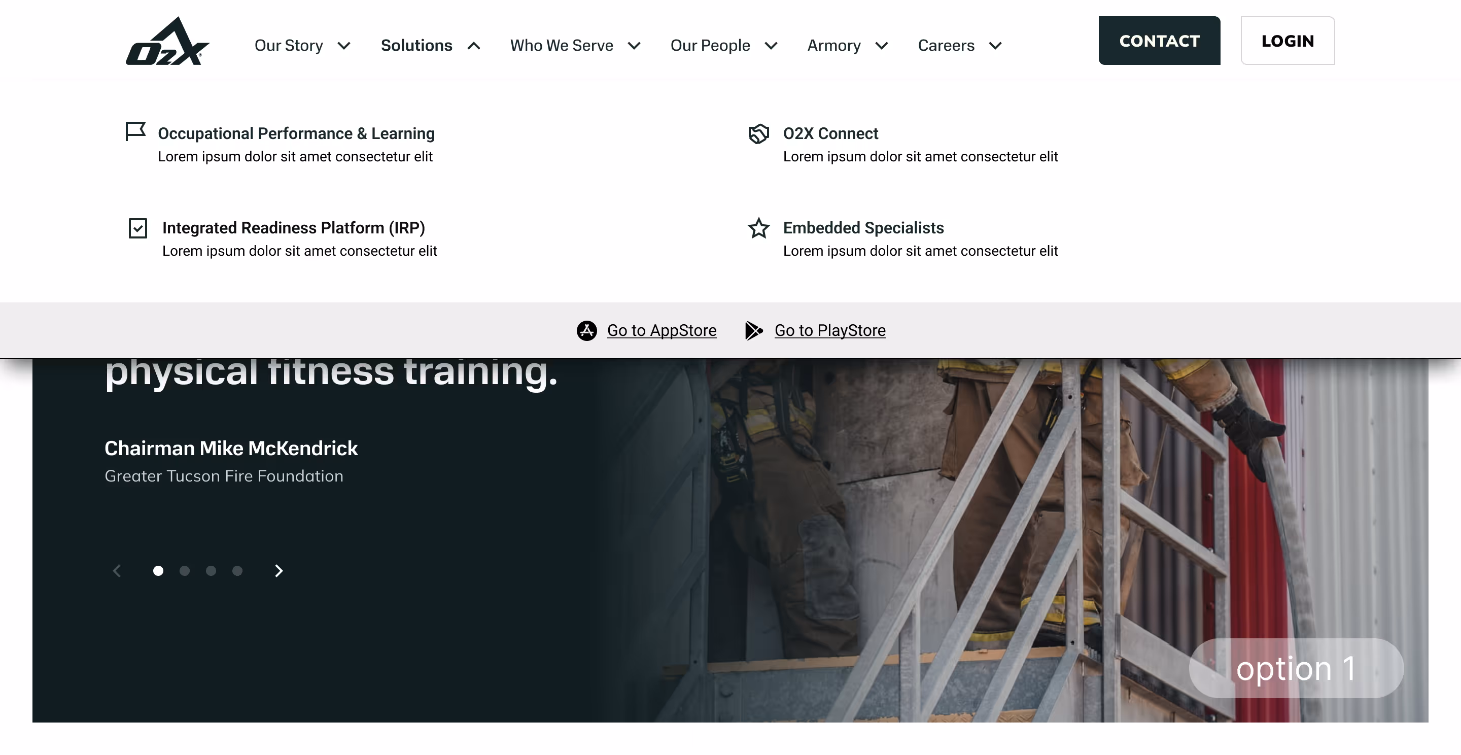 Still, choosing the right UI approaches definitely helped us meet the client’s goals. For example, one of my key suggestions was not just to use a mega menu, but to integrate CTA blocks into specific sections to further draw user attention. Small details, such as adding mini-descriptions to each menu section, helped educate potential clients and organically tell the story of the O2X product.